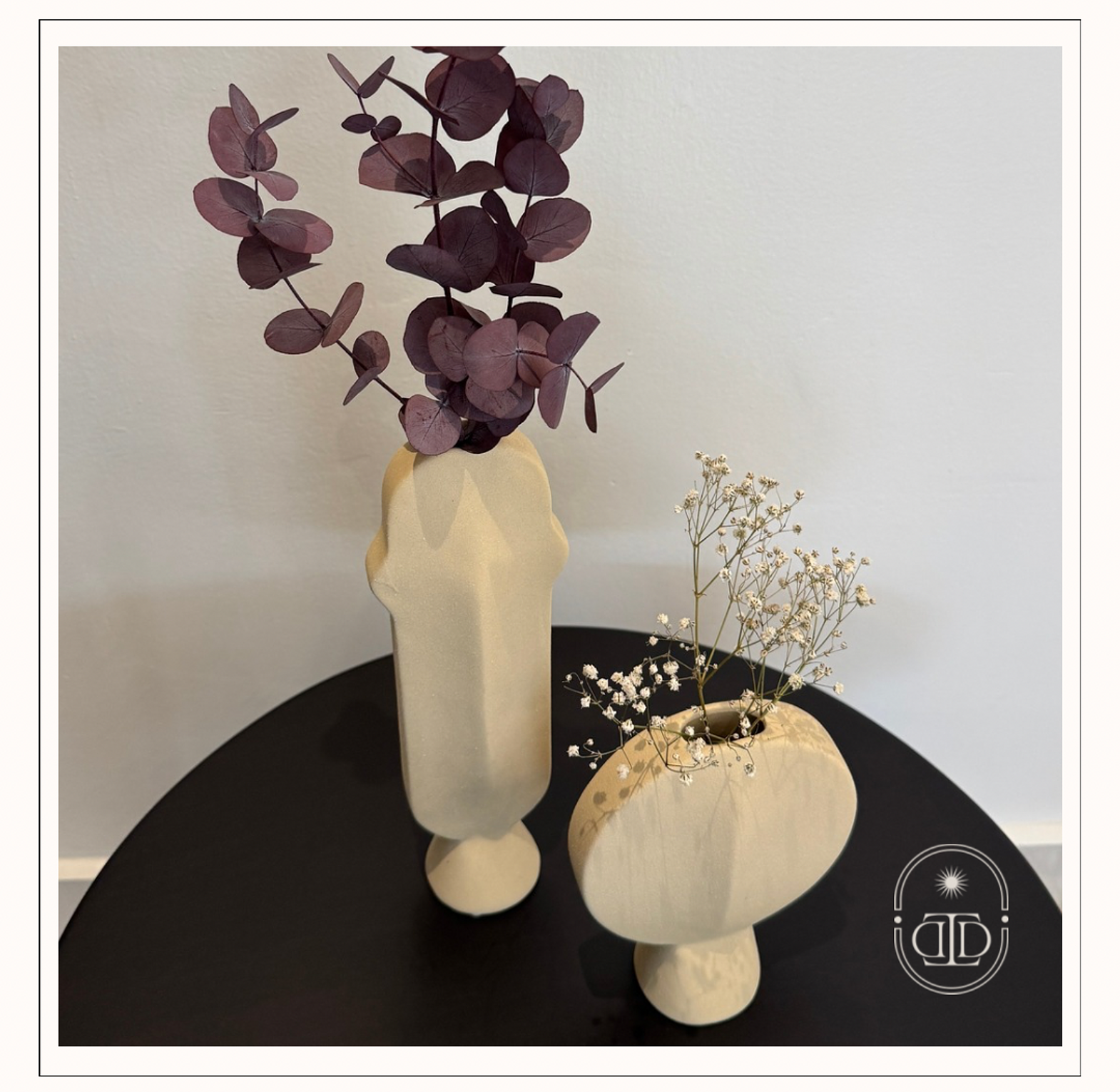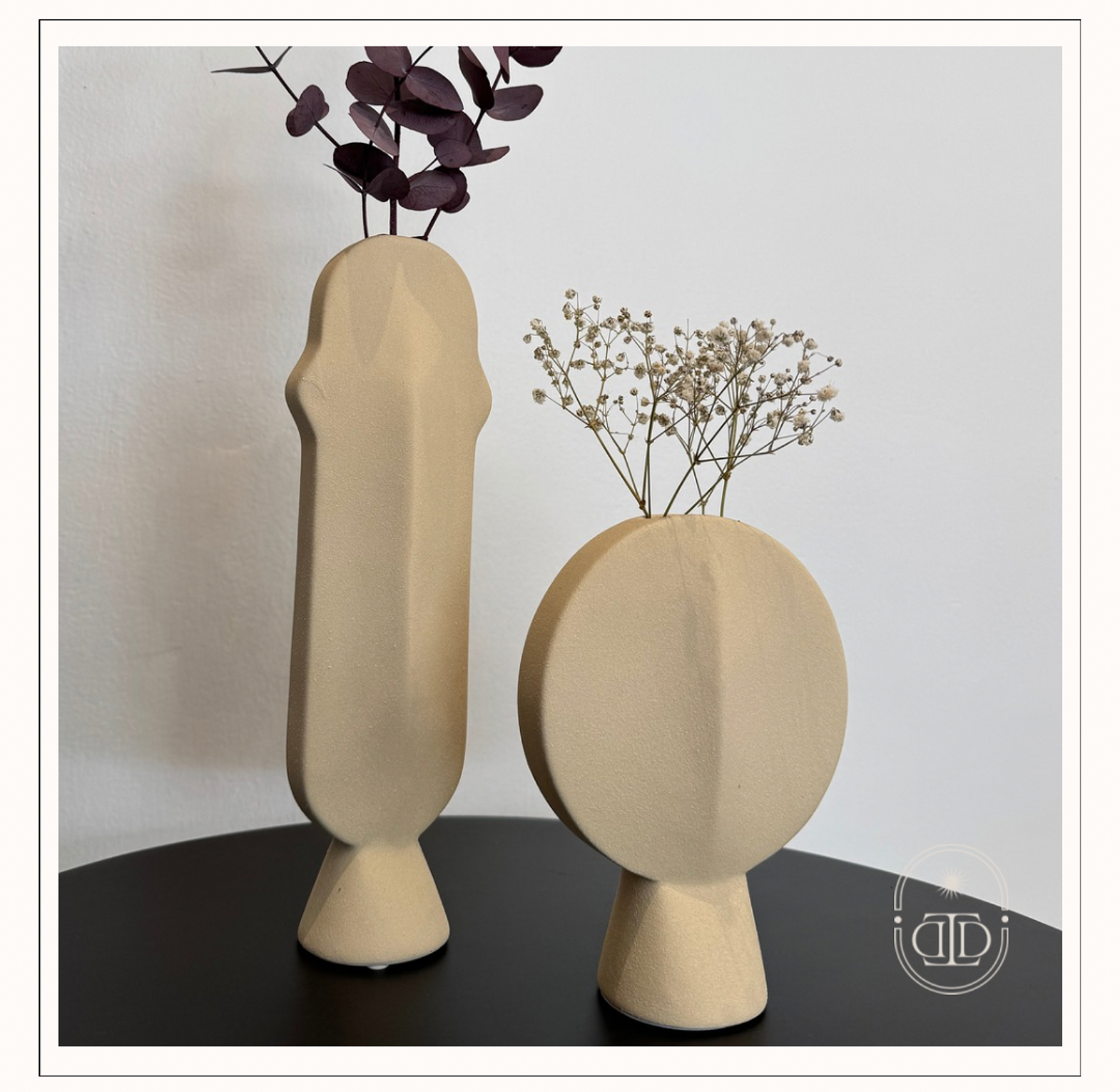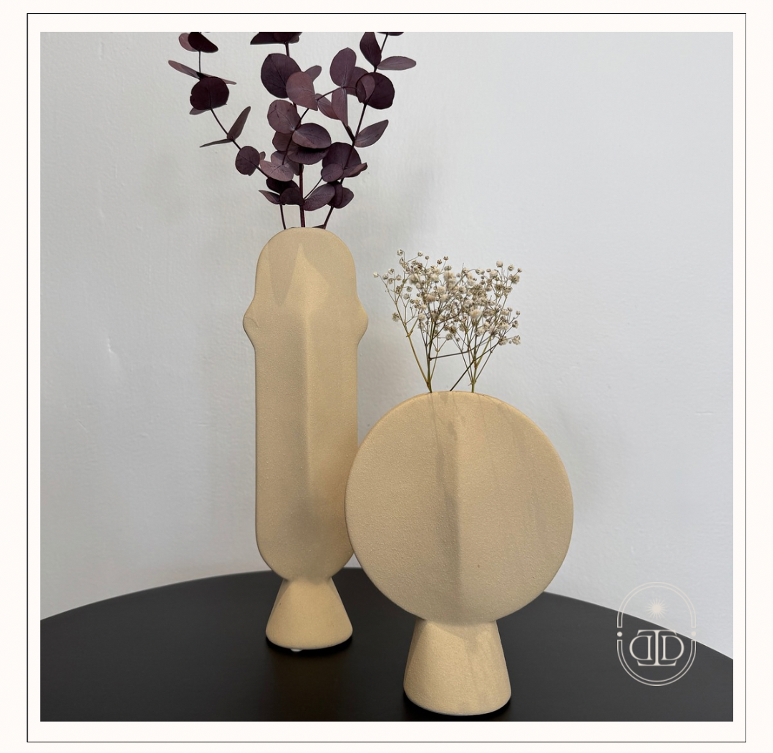 Enhance your décor with this 2-piece sand-colored abstract vase set, featuring a textured finish and modern sculptural design.