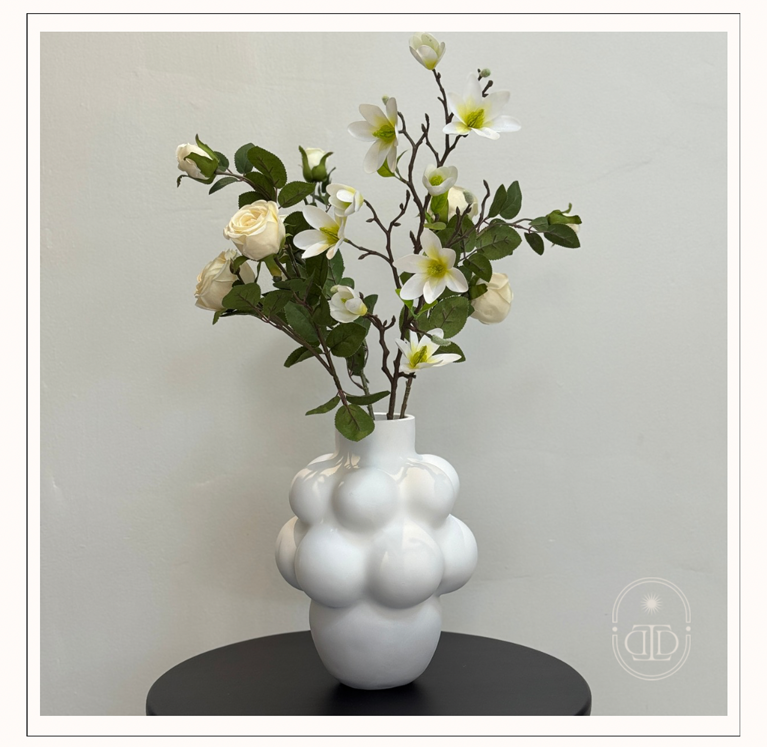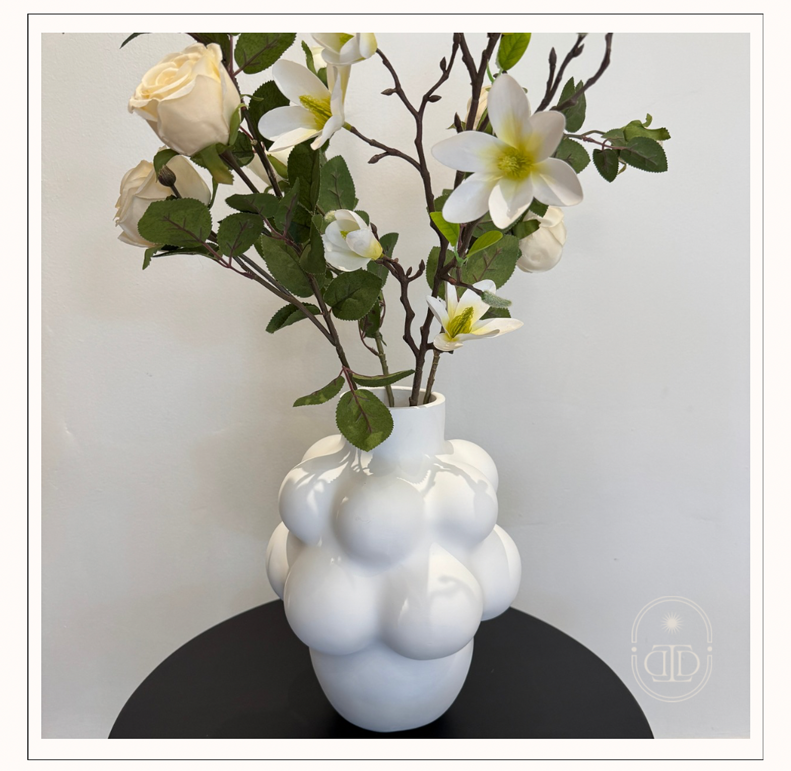Sculptural and dreamy, this white matte vase adds a bold yet airy presence to any space with its cloud-like, bubbled silhouette. A statement piece for modern interiors, itβs as stunning empty as it is with stems.