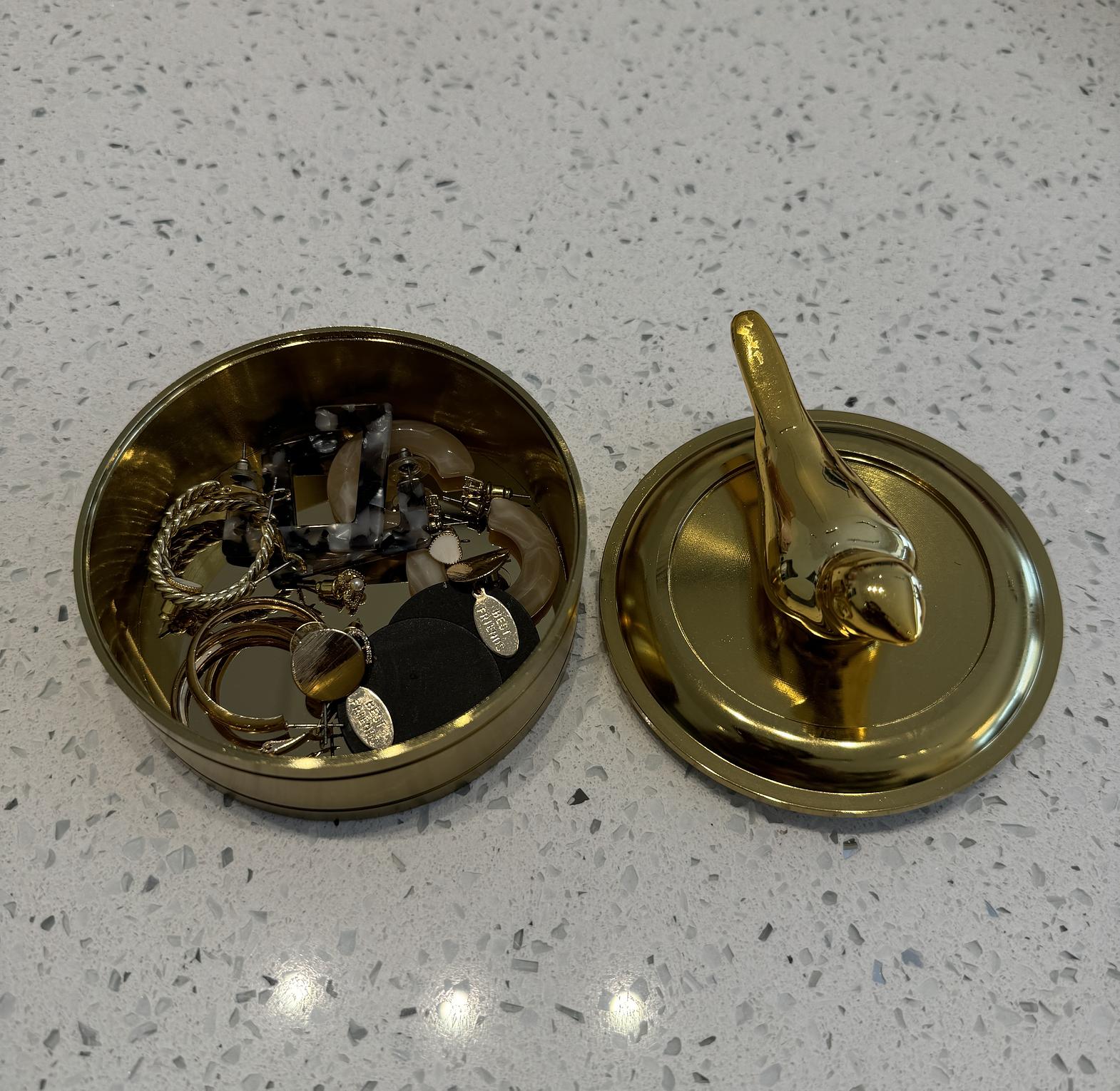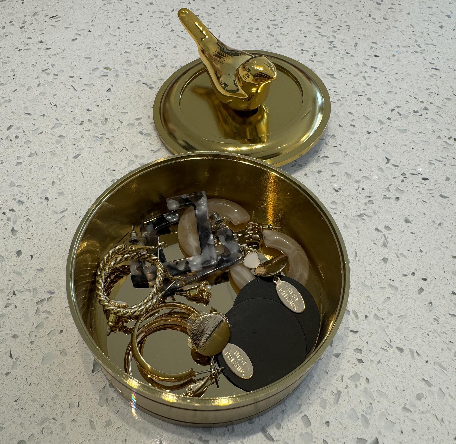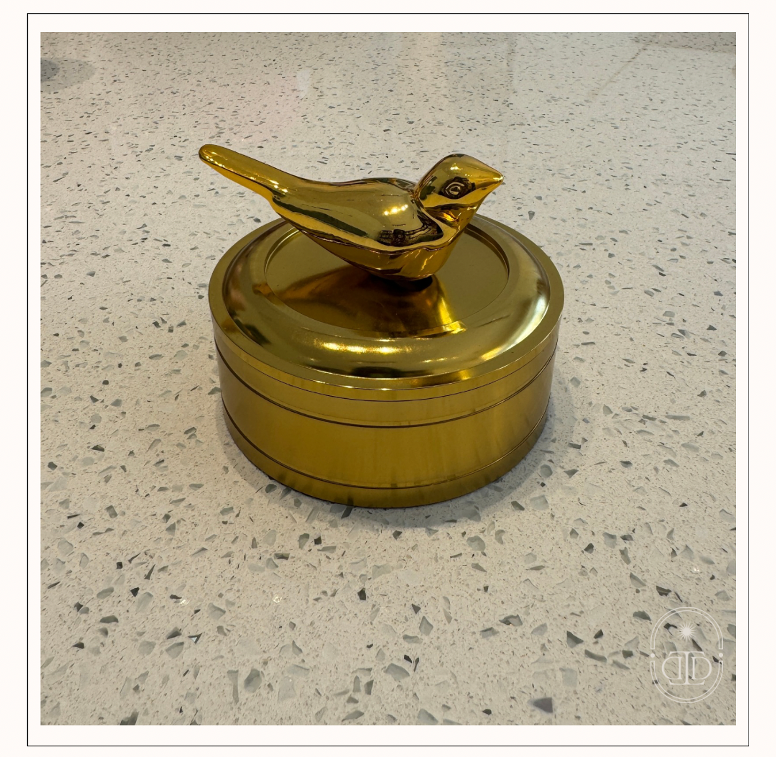 Adorn your vanity with our gold jewelry box featuring a charming bird motif, combining design with whimsical elegance to store your precious pieces in style.