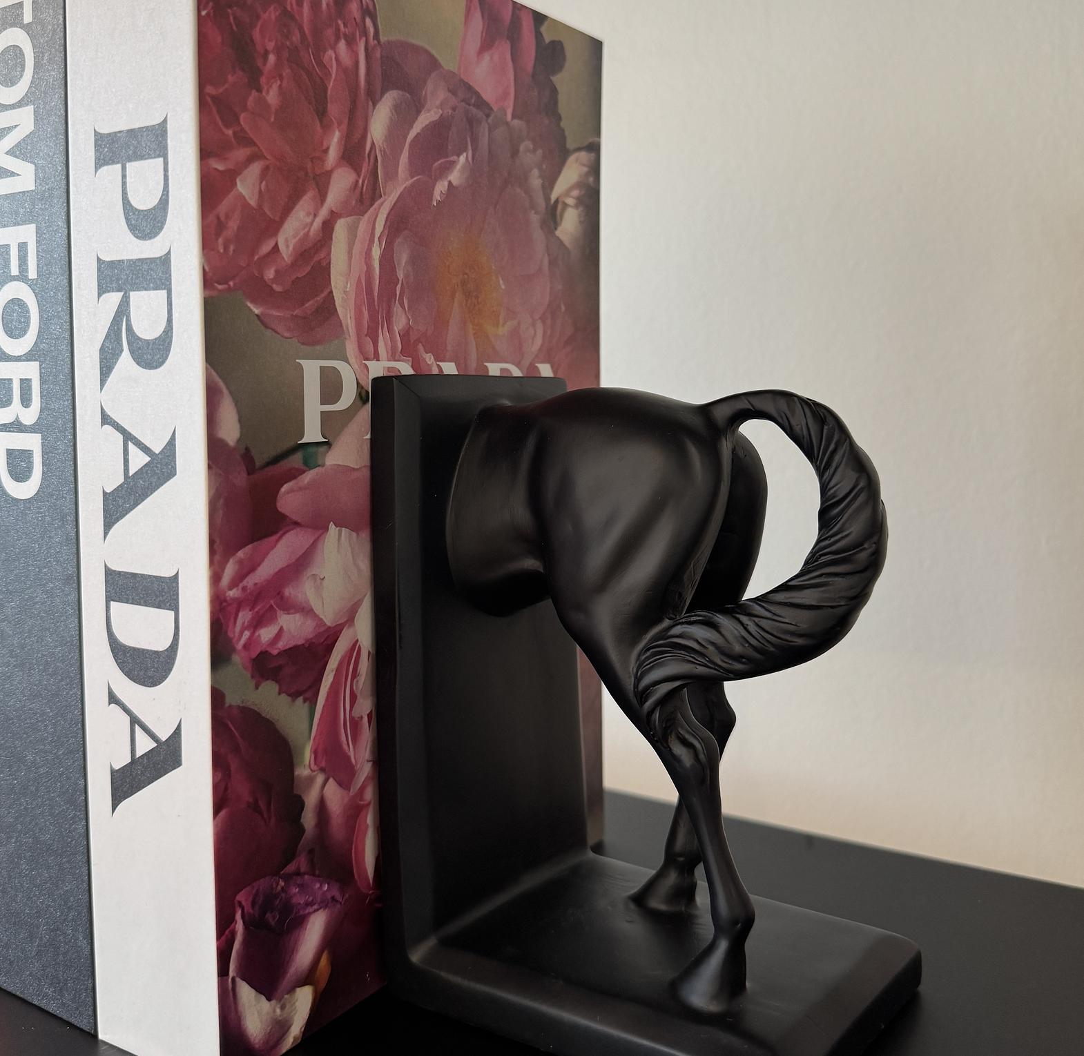 This striking black horse bookend exudes elegance and power, making it a captivating addition to any bookshelf or desk. Perfect for equestrian enthusiasts and lovers of unique decor, it effortlessly combines function with artistry.