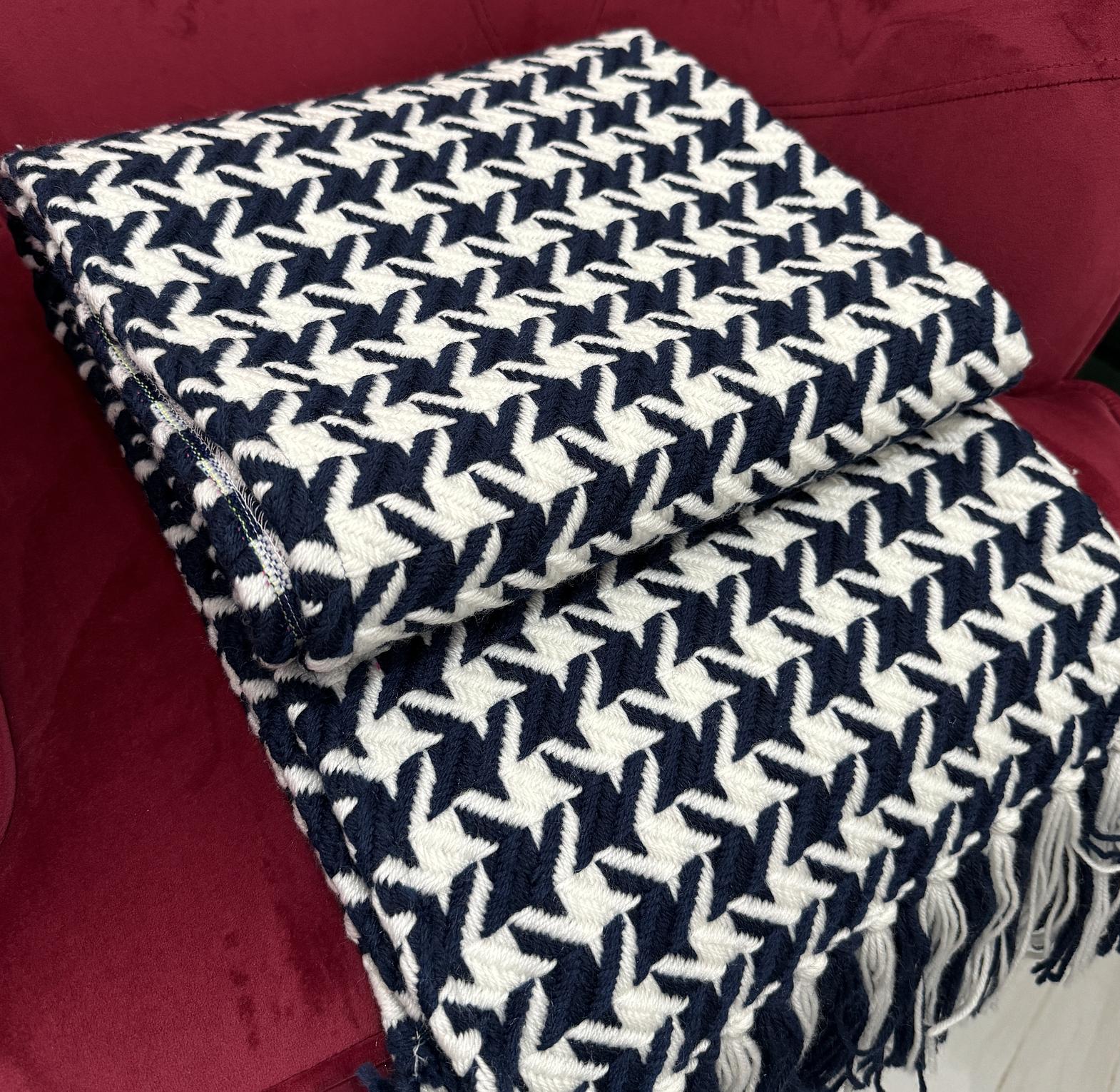 Wrap yourself in classic elegance with our houndstooth blanket, featuring a timeless pattern that adds a touch of sophistication and warmth to any space. This blanket could also come in handy as a shawl.