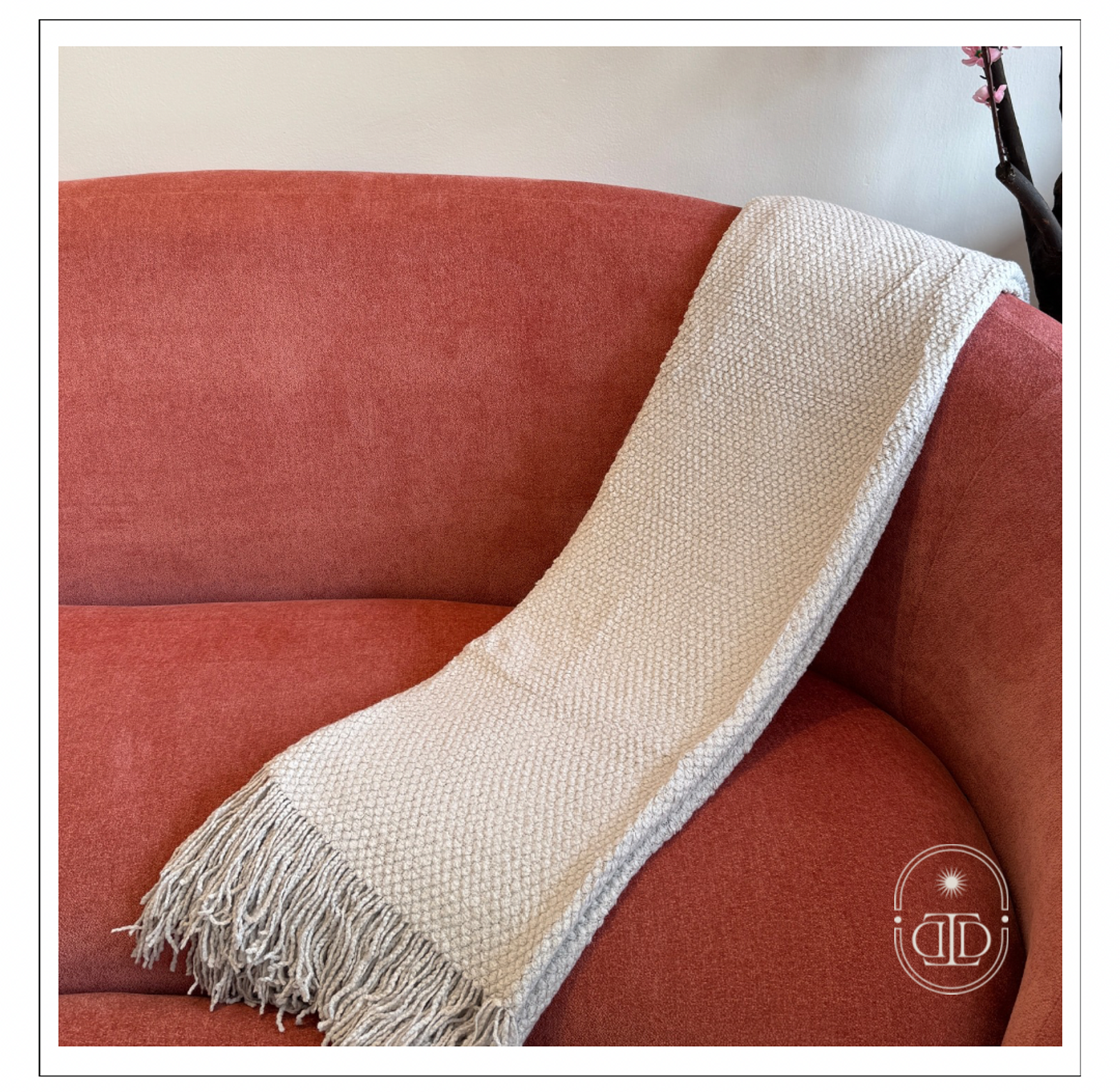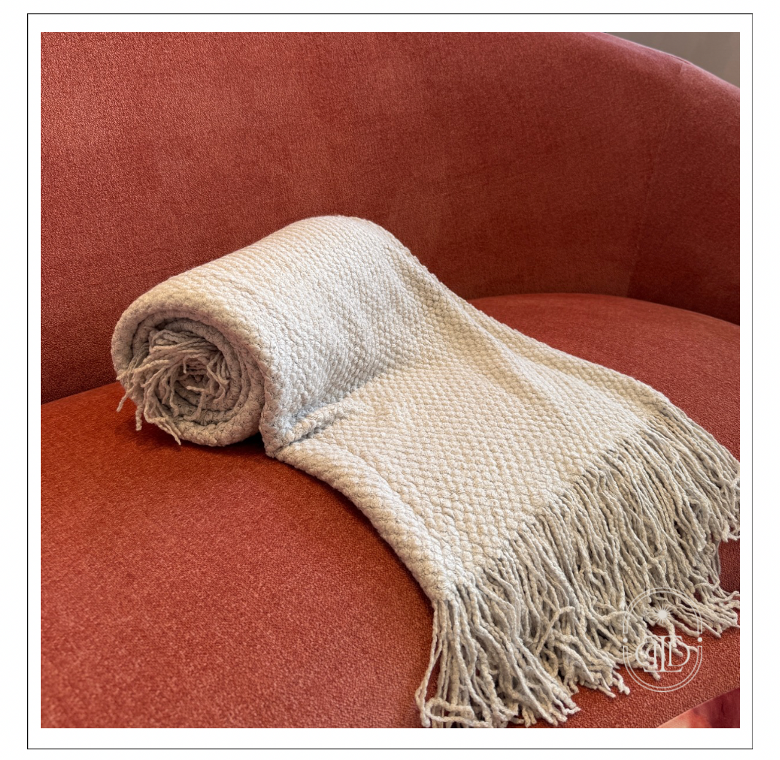 A timeless light grey throw blanket with tassels that adds softness and style to any setting.