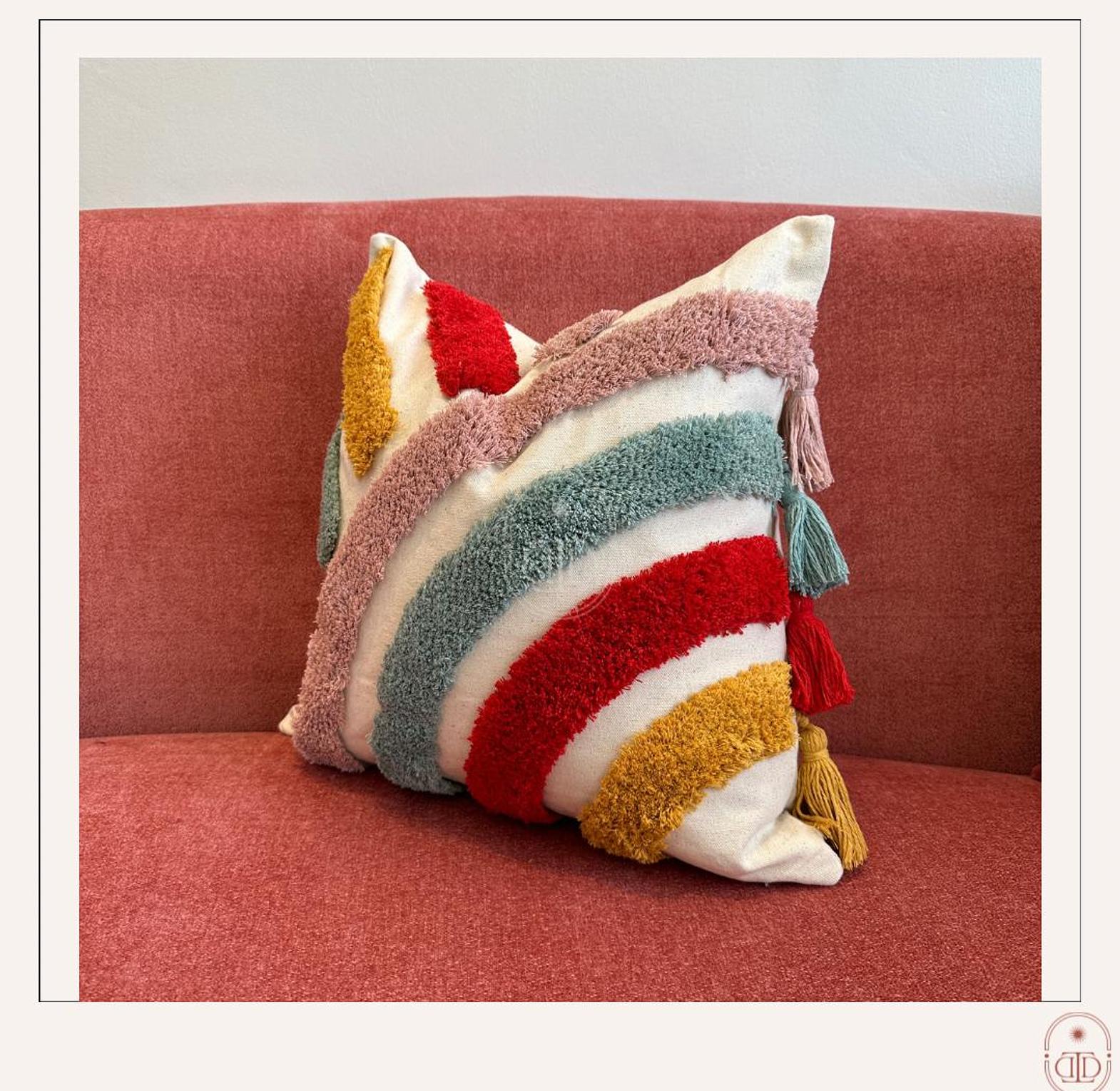 Brighten your decor with our luxe boho tufted rainbow cushion cover, featuring a playful design and plush texture for a vibrant, stylish touch.