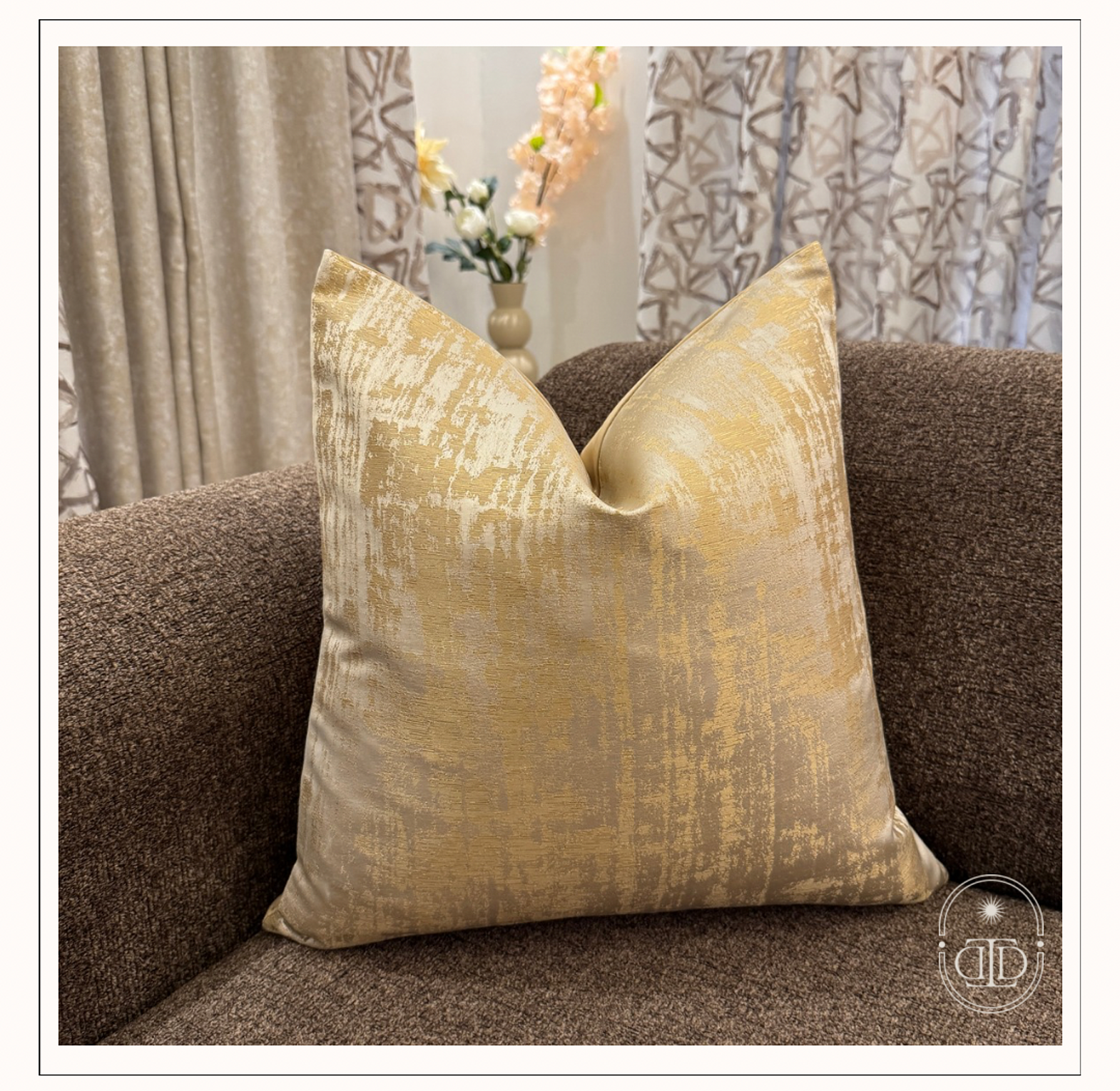 Elevate your decor with our luxurious beige jacquard cushion cover, adorned with a stunning gold lustre that adds a touch of opulence to any space. Its intricate texture and elegant sheen make it the perfect accent for a sophisticated ambiance.