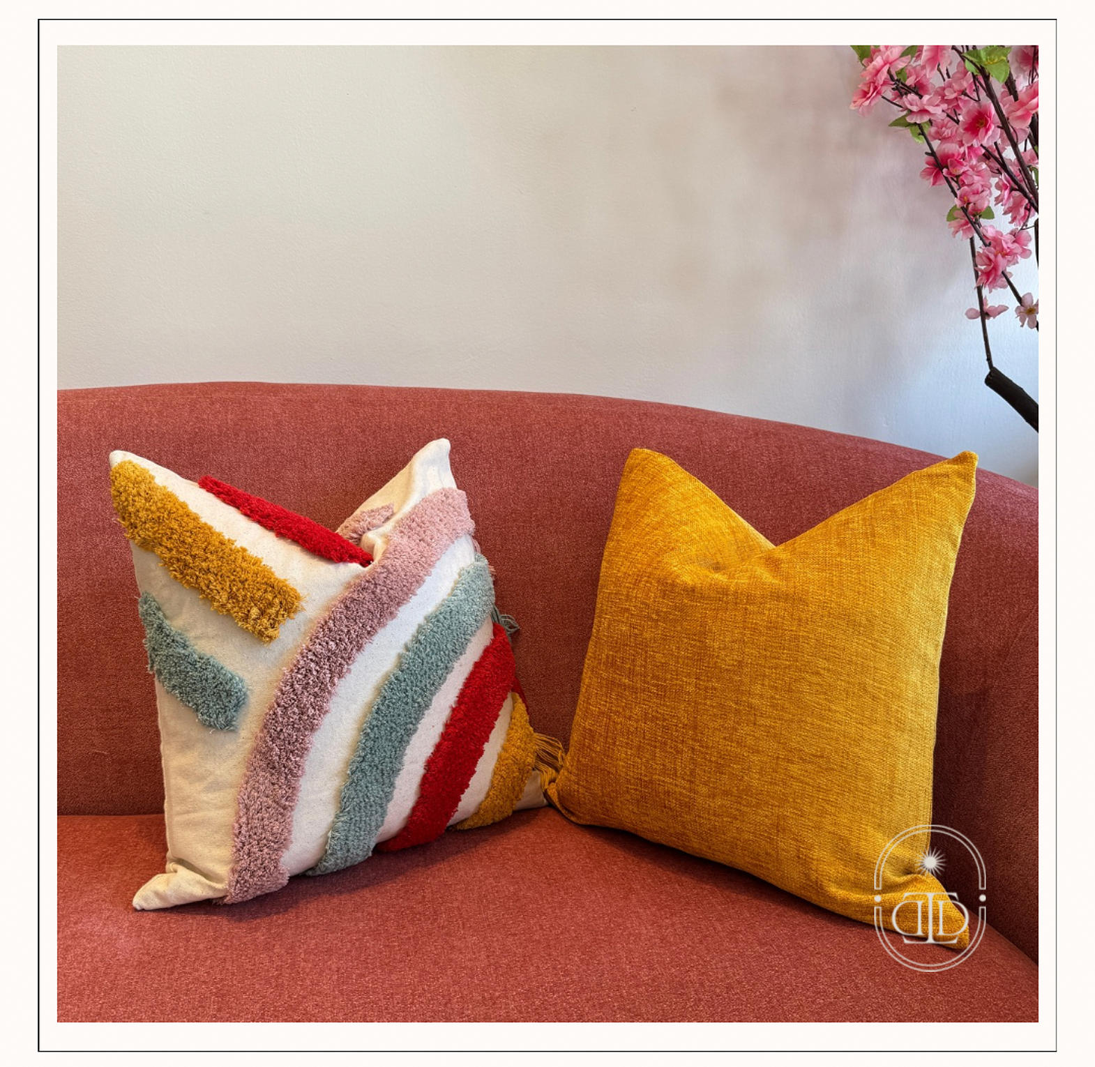 Brighten up your space with this vibrant mustard cushion cover, designed to add a pop of warmth and contemporary charm.