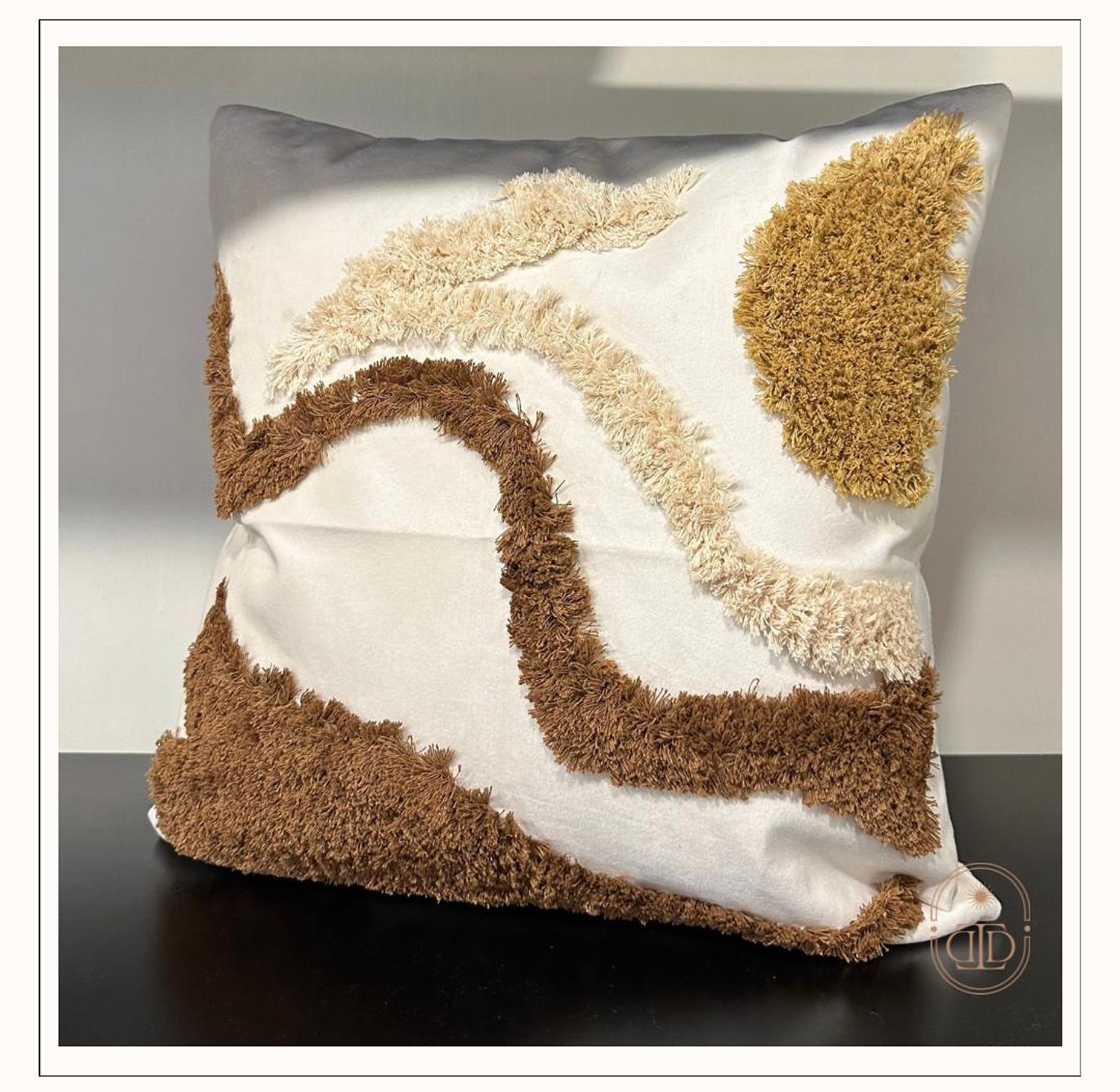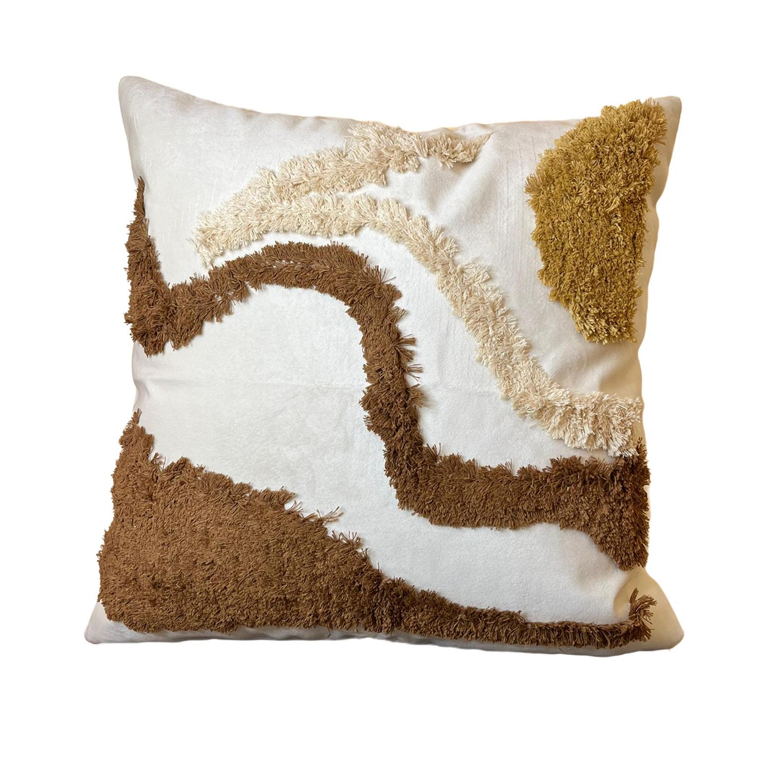 Enhance your space with our off-white velvet cushion cover, 45cm x 45cm, featuring a stylish woven pattern in rich brown for a warm and elegant touch.