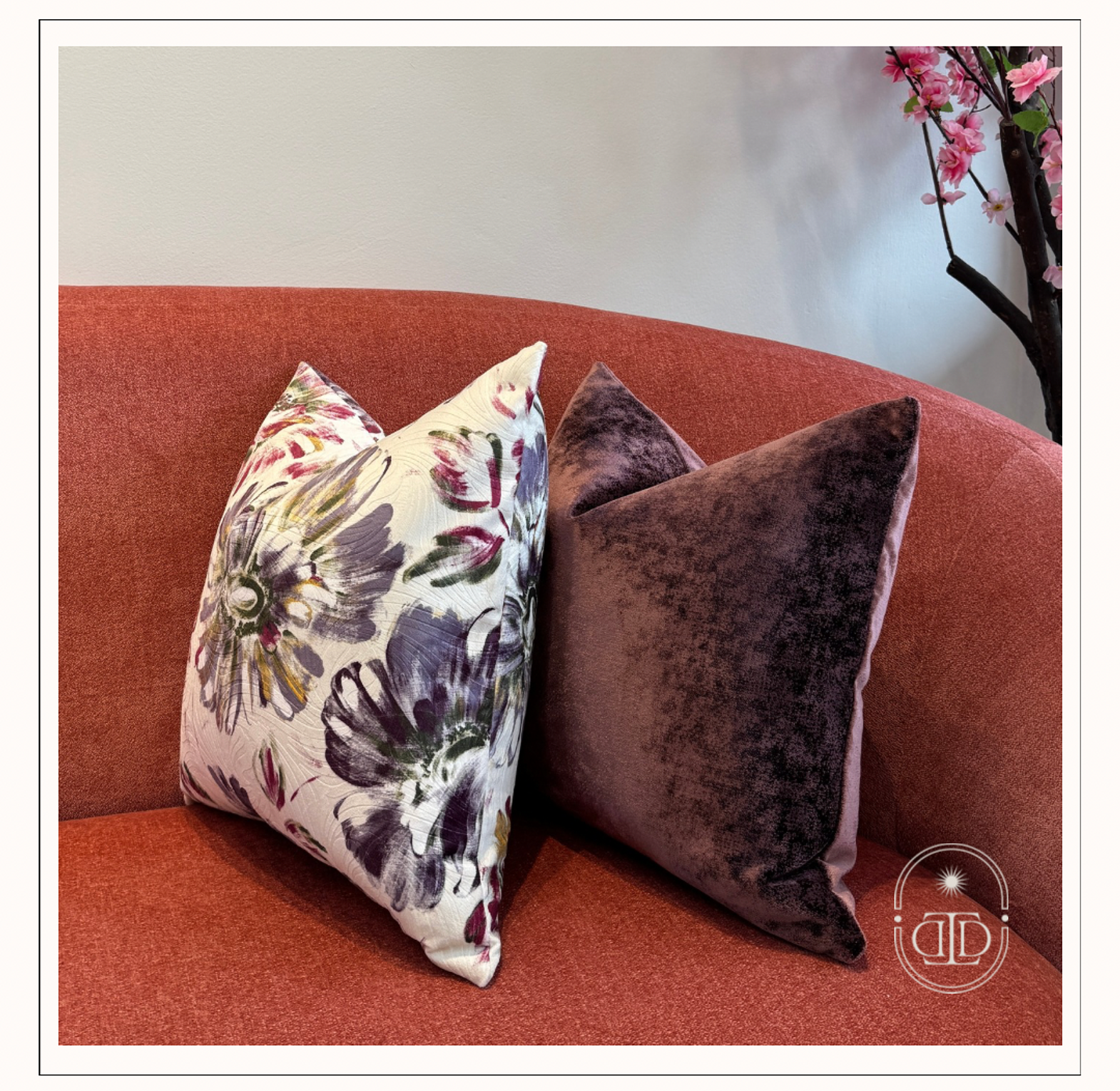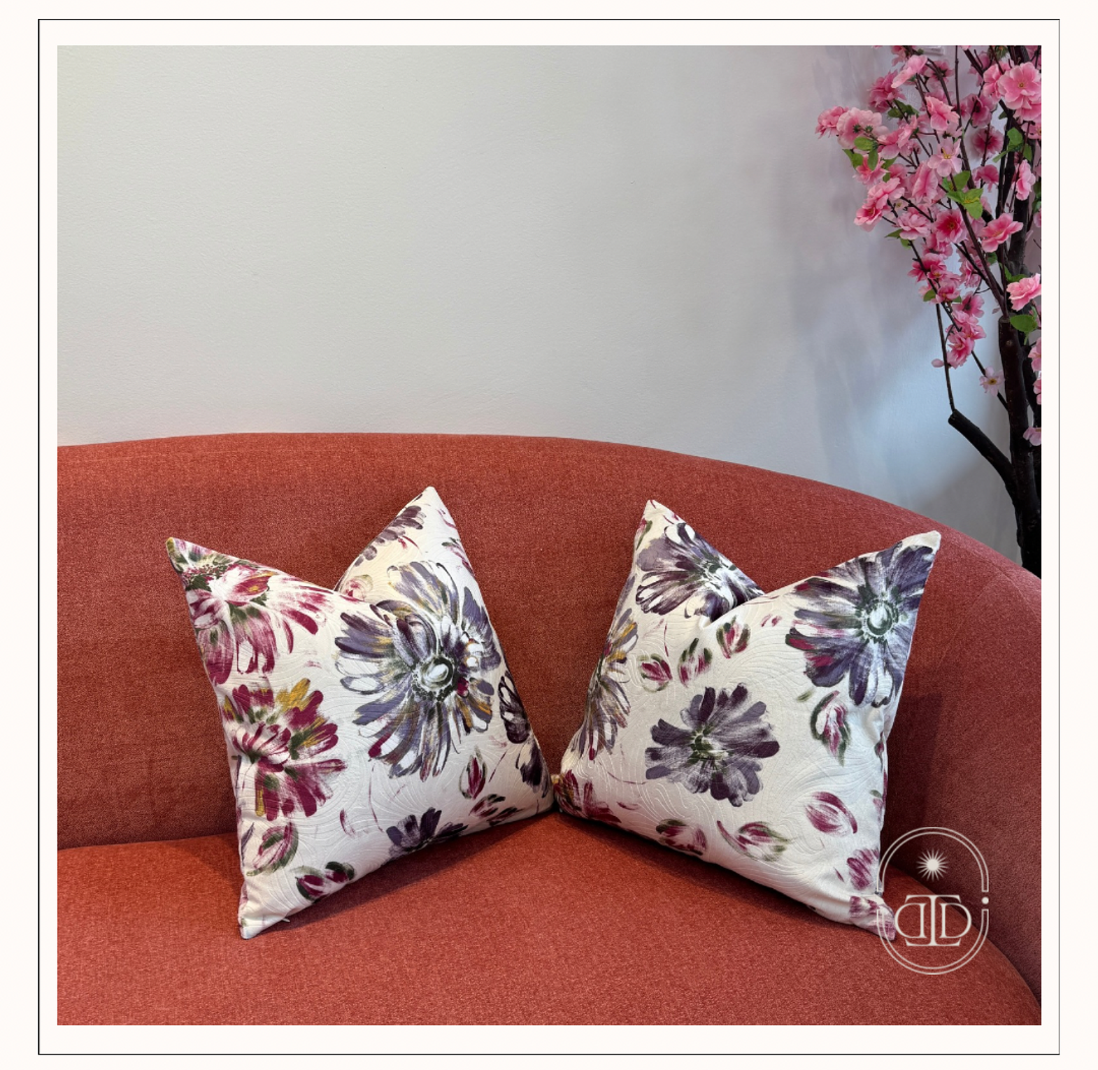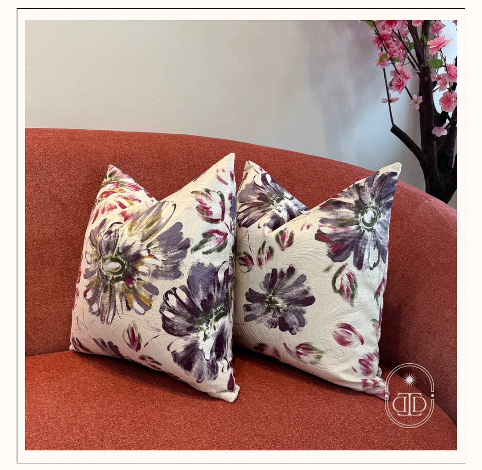 Bring a burst of floral charm into your space with the Dahlia Bloom cushion cover. Its painterly purple blooms on a soft ivory background add a graceful yet lively touch to any interior.
