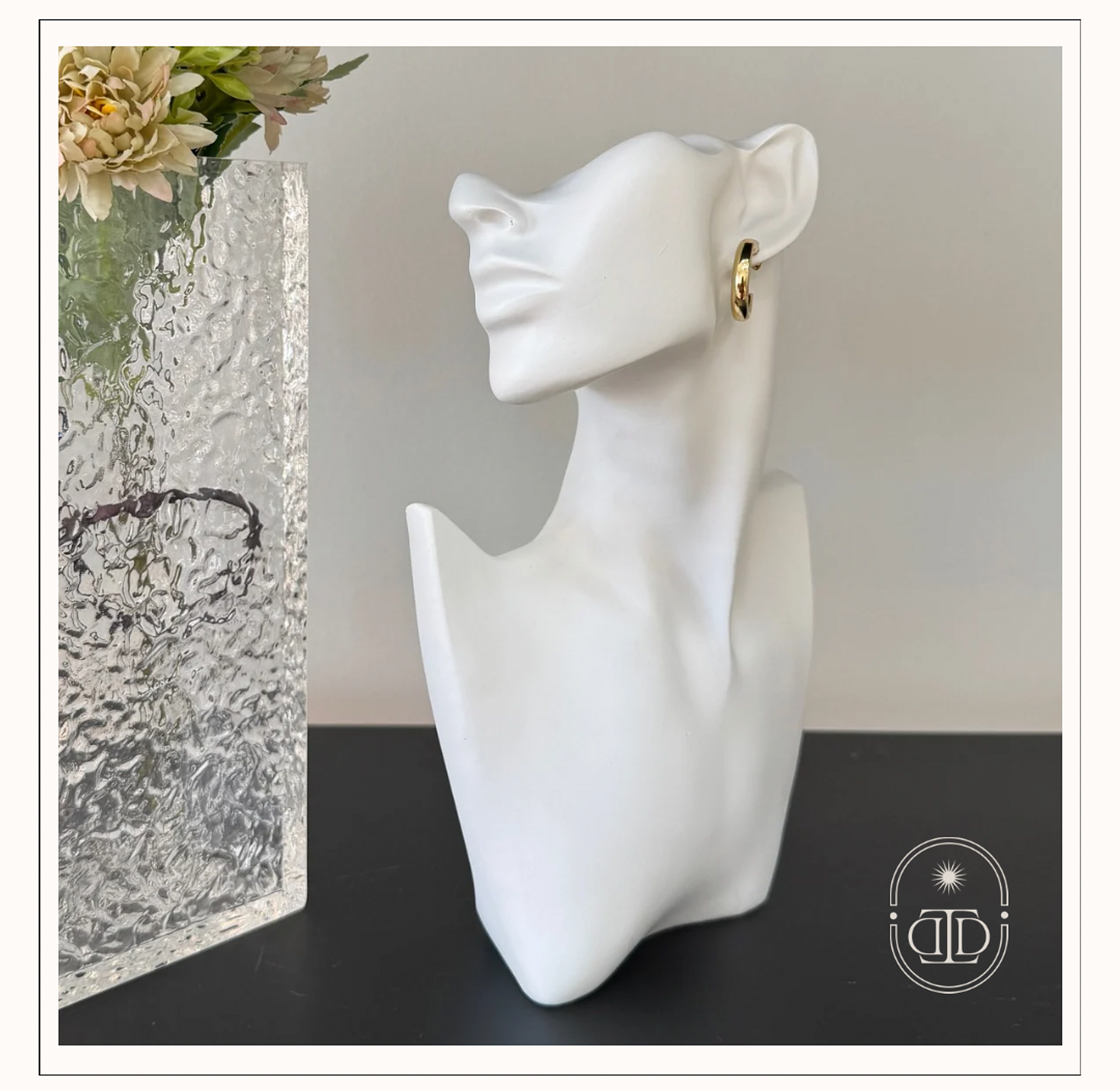 This elegant white abstract face sculpture seamlessly blends art and functionality, offering a unique way to display jewelry such as earrings and necklaces. Its minimalist design enhances any space while keeping your precious accessories beautifully organized.