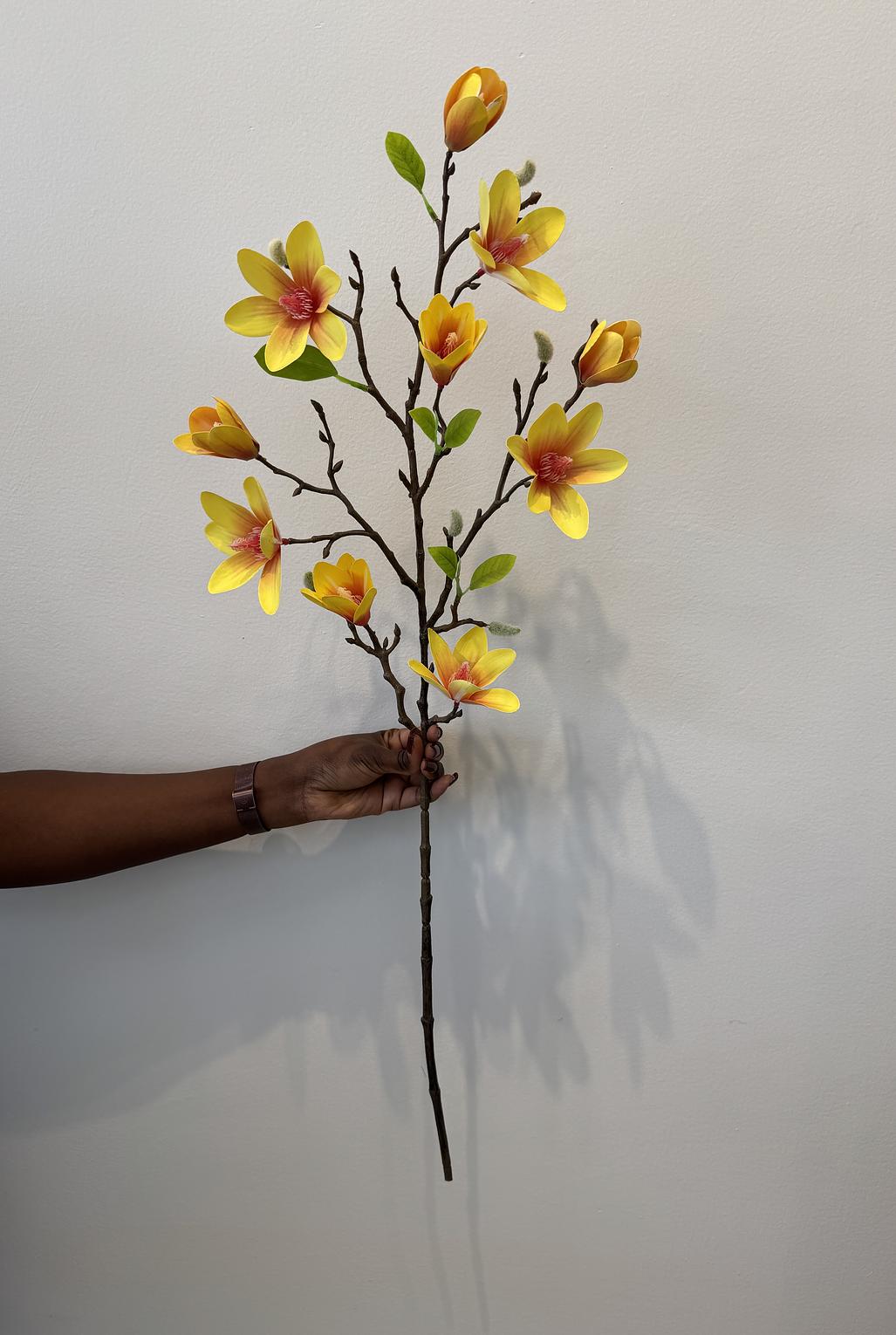 Bring effortless elegance to your home with our realistic faux blooming magnolia branches — a beautiful blend of nature-inspired design and lasting charm. Available in white, yellow, and purple, these artificial magnolia stems are crafted with intricate detail to mimic the soft, full blossoms and natural curves of real magnolia flowers. Whether styled in a tall vase, used as part of a floral arrangement, or displayed on their own, they offer a stunning pop of color and texture that instantly brightens any room. Perfect for modern, rustic, or classic interiors, these decorative faux florals are ideal for living rooms, entryways, event styling, and seasonal décor. Enjoy everlasting beauty without the upkeep — no watering, no wilting, just long-lasting bloom.